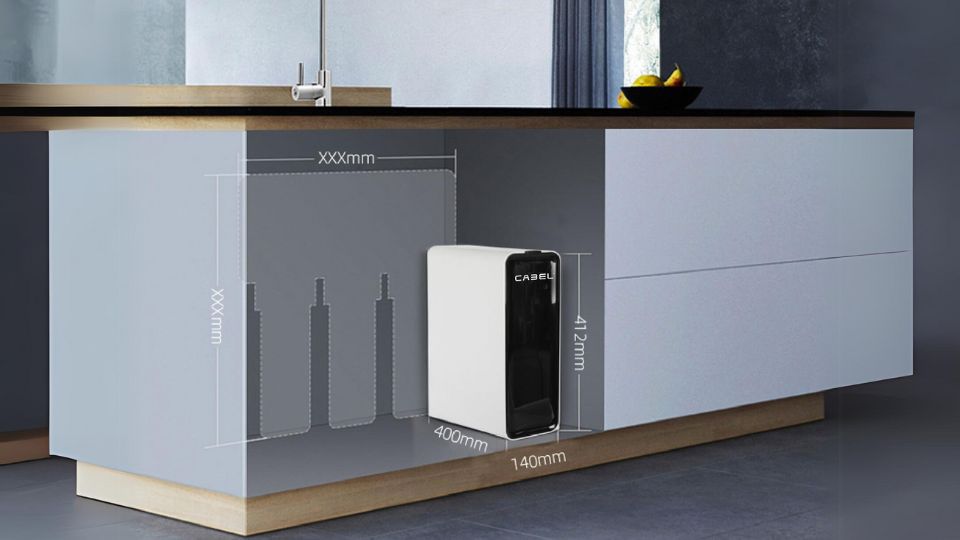 A diferencia de otros sistemas de tratamiento de agua que requieren mucho espacio, la ósmosis Cabel 800GPD es notablemente compacta. Con solo 14 cm de ancho, se adapta fácilmente debajo de cualquier fregadero. Esto no solo te permite ahorrar espacio, sino que también simplifica la instalación y el mantenimiento.